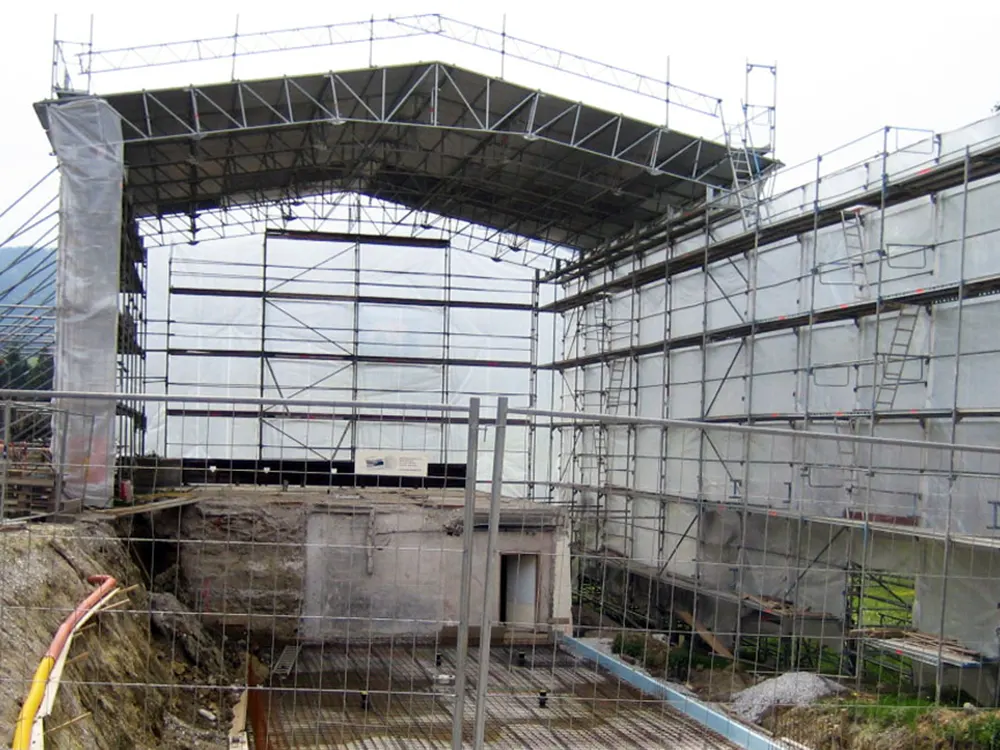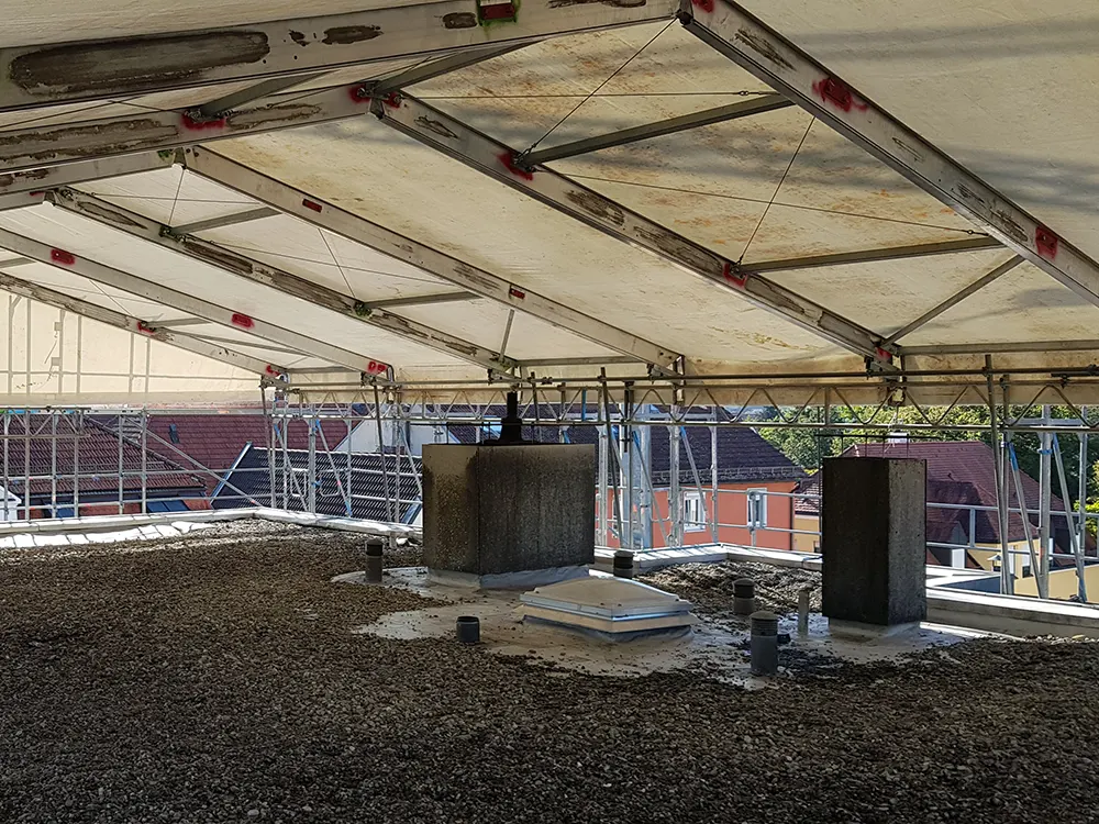Unser Wetterschutzdach sorgt dafür, dass Sie Ihren Zeitplan einhalten können und damit weder Geld noch Material durch Nässe oder Sturm einbüßen.